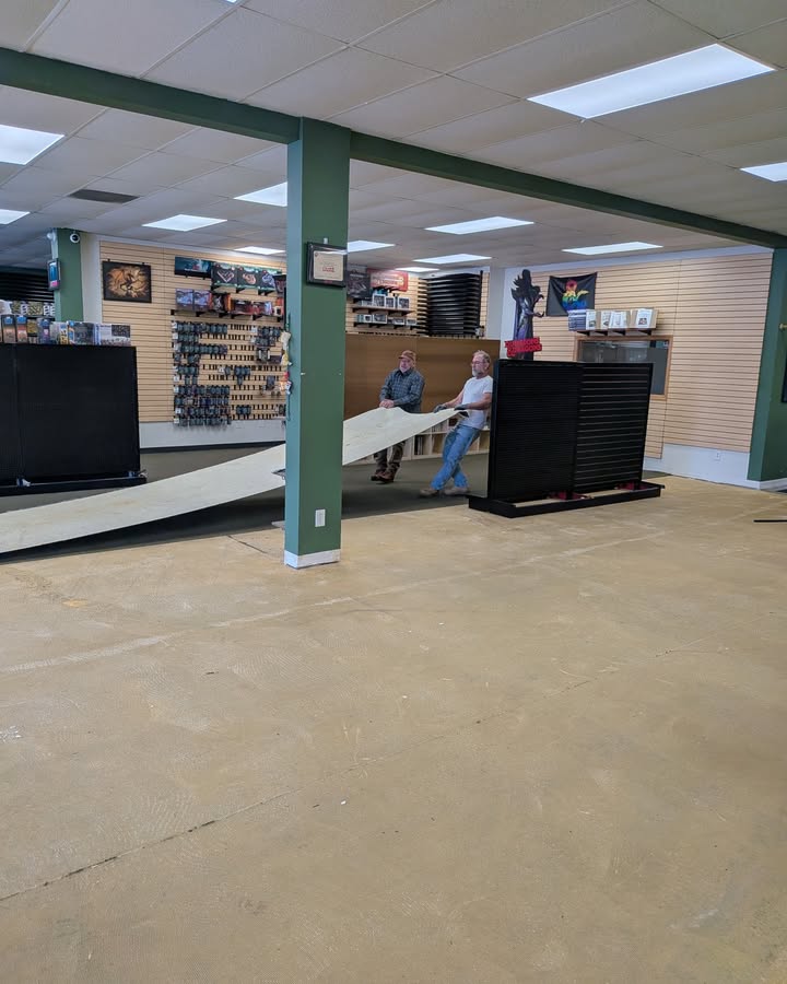 Today, we dismantled the store. The snow storm delayed our start, but we made quite a bit of progress anyway. Mark tried out his gondola dolly with mixed success. Staff piled games high on tables in the event center. And we crammed fixtures into the great room and card center. Our work crew was ready to be done by the end of our day. The store looks sad and empty and is a bit echoey now. Facebook post 2026-01-25 19:28:42 |