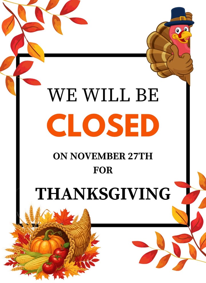Just a reminder that we will be CLOSED on Thursday so our staff can enjoy Thanksgiving with their friends and families. Facebook post 2025-11-25 13:47:13 |