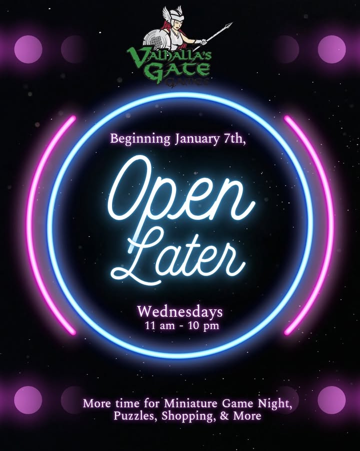 Beginning January 7, 2026, the Gate will be open later on Wednesdays. The new Wednesday hours will match Tuesday and Thursdays hours of 11 am to 10 pm.