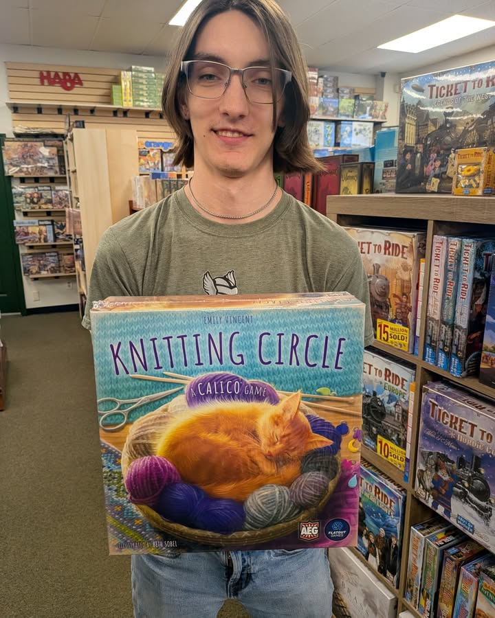 | New arrivals yesterday include Knitting Circles (a Calico game), Point Salad Galaxy, Propolis, 7 Wonders Dice, and a Choose Your Own Adventure box set. Facebook post 2025-10-30 20:12:24 |