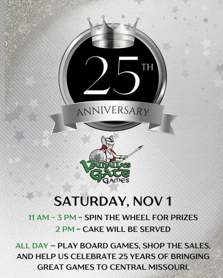 | It seems like just yesterday we were opening on Nifong. Now, years later, we love our location at 2525 Bernadette. On November 1st, help us celebrate 25 years in business. Join us for board game demos, shop the sales table, spin the prize wheel, and enjoy some cake. Facebook post 2025-10-27 09:00:44 |
